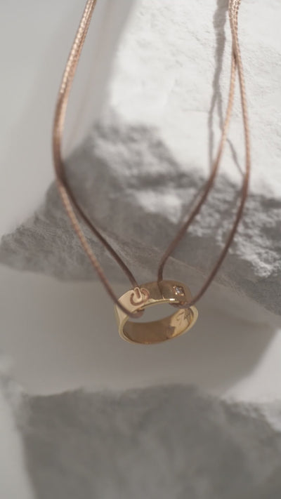 This delicate piece is a quiet tribute to independence and inner resilience. The contrast between the structured gold and the fluid cord reflects the dual nature of feminine energy—strong and grounded, yet flexible and intuitive. It serves as a reminder that activating your power begins with recognizing your own completeness.